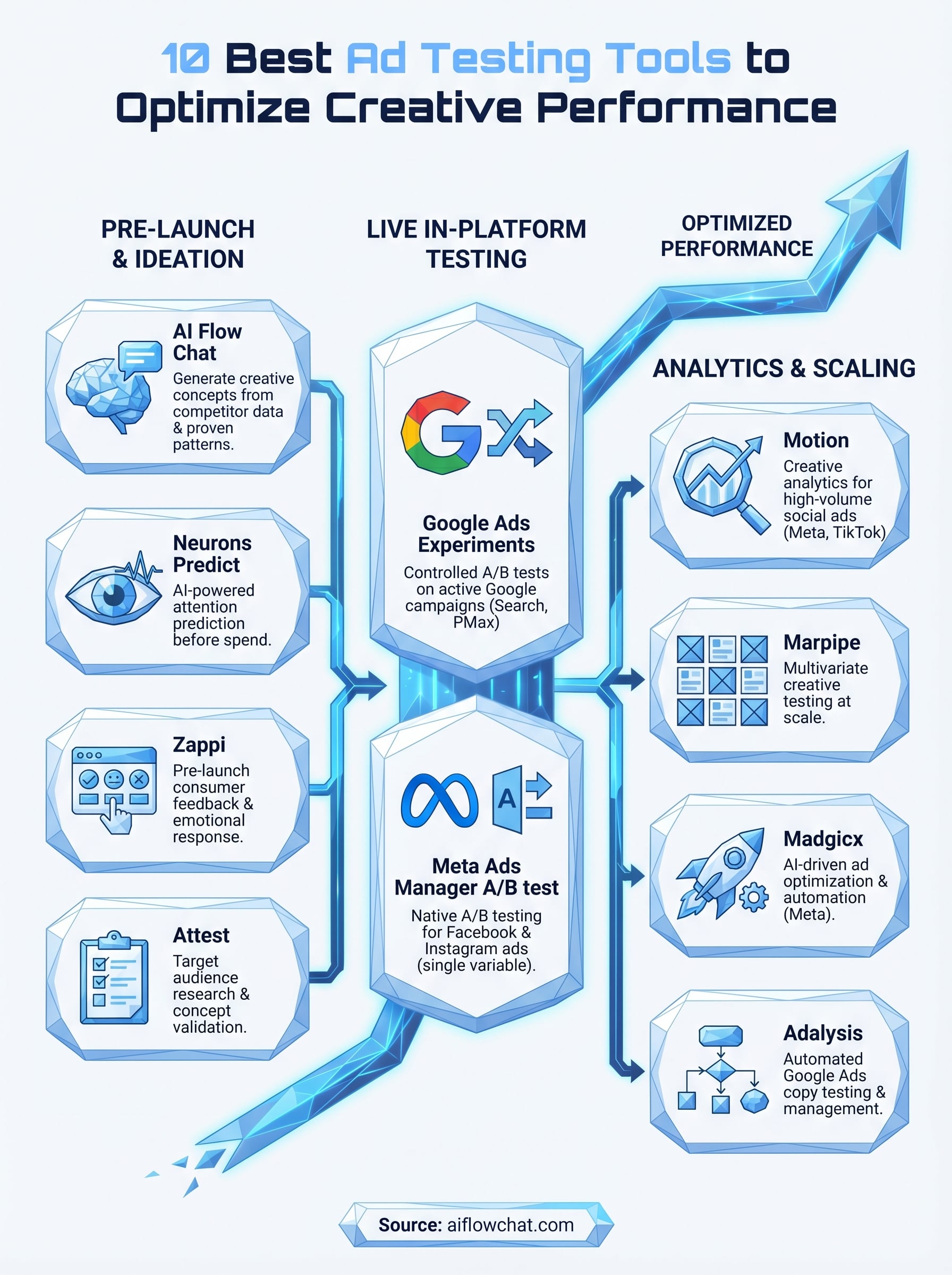 Before any of those tools can do their job, though, you still need strong creative concepts to test in the first place. That's where AI Flow Chat fits into your workflow. You can use it to analyze competitor ads, extract winning patterns, and generate informed concepts before a single dollar goes to media spend. Try AI Flow Chat and build your next round of creatives from proven reference material instead of guesswork.