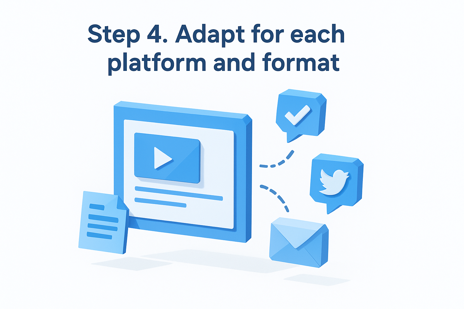 After your extraction pass, go back through the map and assign a primary platform to each message based on its format and natural tone. Data-backed arguments tend to perform well on LinkedIn. Personal stories drive engagement on TikTok and Instagram Reels. Step-by-step processes convert well in email newsletters and long-form blog content. Matching each message type to the right platform before you start producing removes the guesswork and stops you from creating content that will not land regardless of how well it is written.